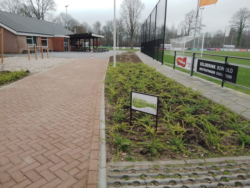 Met dank aan Hoveniers Krabbenborg is de entree van v.v. Reünie mooi aangekleed met beplanting!